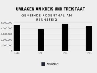 in den letzten Wochen erreichten wir einen wichtigen Meilenstein. Unser Gemeindehaushalt erhielt die sog. Würdigung der Rechtsaufsicht und die Beschlüsse dazu werden hier in diesem Amtsblatt veröffentlicht. Wie bereits angekündigt werde ich hier in diesem Grußwort auch kurz einmal ein paar wichtige Punkte aus dem Haushalt aufgreifen. Besonders wichtig und auch nicht selbstverständlich in diesen Zeiten ist, dass unser Haushalt insgesamt ausgeglichen ist und wir zugleich auch nahezu schuldenfrei sind und bleiben. Die verbliebenen Altschulden können wir planmäßig erst aus vertraglichen Gründen bis 2026 abgelten. Der Haushalt umfasst im sog. Verwaltungshaushalt ein Volumen von über 10 Millionen Euro. Hierbei ist festzustellen, dass wir natürlich erhebliche Einnahmen im Bereich der Steuern haben, diese aber im gleichen Atemzug auch zu einem großen Teil an den Landkreis und sogar an den Freistaat Thüringen abgeben müssen. So müssen wir allein in diesem Jahr 4.389.100,00 € an Kreisumlage und Finanzausgleichs- und Gewerbesteuerumlage an das Land leisten. Gleichzeitig erhalten wir keinerlei Schlüsselzuweisungen vom Freistaat. Das ist aus meiner Sicht eine bedenkliche Entwicklung für die Zukunft kommunaler Finanzen. In der folgenden Grafik können Sie die Entwicklung eindrucksvoll sehen.
