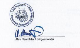 Aufgrund des § 55 der Thüringer Kommunalordnung (ThürKo) erlässt der Gemeinderat der Gemeinde Rosenthal am Rennsteig mit Beschluss (§ 57 ThürKo) vom 05.12.2024 folgende Haushaltssatzung: