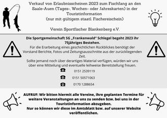 | Beginn: 14:00 Uhr im Klubraum Rennsteigsaal Blankenstein |