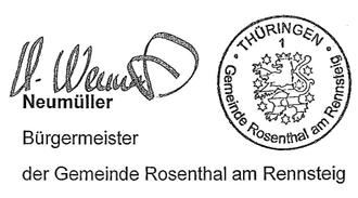 Landkreisordnung (ThürKO) in der Fassung der Bekanntmachung vom 28. Januar 2003 (GVBI. S. 41), zuletzt geändert durch Artikel 3 des Gesetzes vom 5. Oktober 2022 (GVBI. S. 414, 415), der §§ 19 und 46 des Thüringer Gesetzes zur freiwilligen Neugliederung kreisangehöriger Gemeinden im Jahr 2019 (ThürGNGG 2019) vom 18. Dezember 2018 sowie der §§ 2, 7, 7a und 21 b des 'Thüringer Kommunalabgabengesetzes (ThürKAG) in der Fassung der Bekanntmachung vom 19. September 2000 (GVBI. S. 301), zuletzt geändert durch Gesetz vom 10. Oktober 2019 (GVBI. S 396) erlässt die Gemeinde Rosenthal am Rennsteig folgende Satzung: