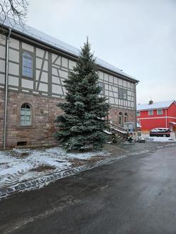Stattlich stand er da, am Bürgerhaus Esperstedt, der schicke Weihnachtsbaum, gespendet von der Familie Niedan aus Esperstedt. Vielen Dank dafür.