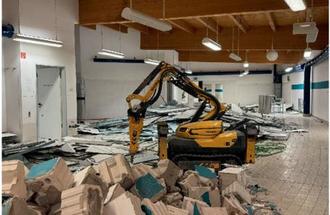 Das beigefügte Bild zeigt die laufenden Abrissarbeiten im Umkleidebereich und dokumentiert den sichtbaren Beginn dieses Bauabschnittes.