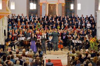 Nach solch einem bedenkenswerten Abschluss ist eine Zugabe oder Wiederholung eines Stückes nicht üblich, doch die fast 500 Besucher „erbaten“ mit ihrem Beifall die Wiederholung von „Verleih uns Frieden gnädiglich!“ und nach der Aufforderung des Komponisten (Dirigent dieser Aufführung) mitzusingen taten es sehr viele.
