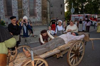 Mit unserem diesjährigen Bild „Fron und Zehnt - von Abgaben geplagt“ möchten wir die Situation der ländlichen Bevölkerung jener Zeit für Sie lebendig werden lassen. Wir laden Sie herzlich ein, den historischen Bauernumzug am 14.09.2024 mit zu verfolgen und zu bestaunen.