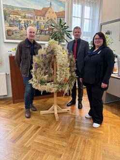 Die kunstvoll handgefertigte Krone steht als Symbol für die Wertschätzung der landwirtschaftlichen Arbeit, für Gemeinschaft und Tradition in unserer Region. Sie schmückt nun das Rathaus und wird dort der Öffentlichkeit präsentiert.