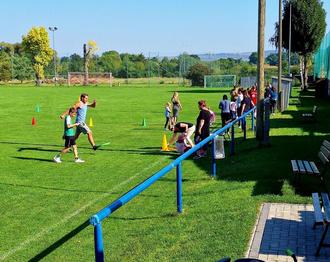 Die Kinder hatten an 6 Stationen die Gelegenheit lustige sportliche Aufgaben zu erfüllen. Dazu zählten: Schubkarrenrennen, Dreibeinlauf, Schwammweitwurf, Schwimmflossenlauf, Gummistiefelzielwurf und Schlauchkegeln. Auch die Hüpfburg und die Klett-Torwand sind gut bei allen angekommen. Am Ende der Veranstaltung waren alle Sieger und bekamen ein Medaille und einen kleinen Preis.
