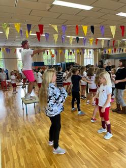 Dass der Start nach den Ferien nicht so holprig wird und auch der Zeitraum bis Weihnachten nicht unendlich erscheint, wurde am Mittwoch eine langfristig geplante Tanzparty mit Michael Hirschel veranstaltet. Unter dem Motto „Let´s dance for Kids - das coole Bewegungsprojekt“ wurde sich am Mittwoch unter flotten Rhythmen ausgetobt und in zwei Gruppen coole Tänze einstudiert. Zu erst durften die großen Kinder der 3. Und 4. Klasse gemeinsam mit ihren Lehrern das Tanzbein schwingen und im Anschluss haben die Kinder der 1. und 2. Klasse ihr Können gezeigt.
