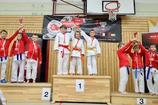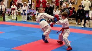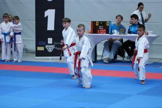 Die Aufregung bei den Kindern und vor allem den mitgereisten Eltern auf der Tribüne war entsprechend groß. In den Disziplinen Kata (Bewegungsformen) und dem Jiyu-Kumite (Freikampf) ging es im Einzel und im Team um die Medaillen.