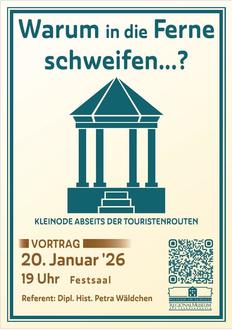 Unter dem Titel „Warum in die Ferne schweifen…“ stellt uns Frau Wäldchen Kleinode abseits der Touristenrouten vor. Dazu zählen unter anderem das Kloster Donndorf, die Zuckerfabrik Oldisleben, die Sachsenburgen und der größte Reisigbesen der Welt in Udersleben. Dies soll nur eine kleine Auswahl sein und vielleicht Anregung, im neuen Jahr den einen oder anderen Ausflug in die nähere Heimat zu unternehmen.