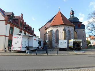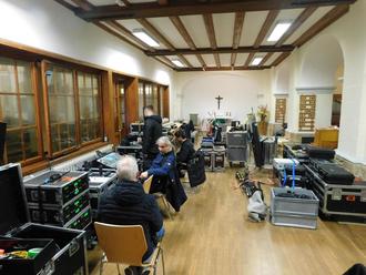 Am Tag vor der Sendung positionierte sich die gesamte Technik vor und in der Kirche, selbst eine eigne Stromversorgung stand bereit.