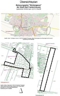 Der Vorentwurf des Bebauungsplanes „Weidengasse" der Stadt Bad Frankenhausen - ergänzendes Verfahren gern. § 214 (4) BauGB, bestehend aus der Planzeichnung sowie der Begründung mit artenschutzrechtlichem Gutachten, wird gemäß § 3 (1) BauGB zur frühzeitigen Öffentlichkeitsbeteiligung im Zeitraum: