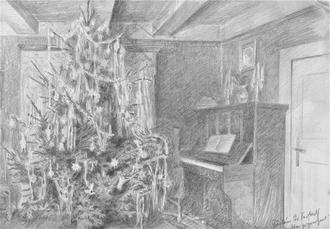 Weihnachtsstube, Bleistiftzeichnung von Walther Frahm, 1917