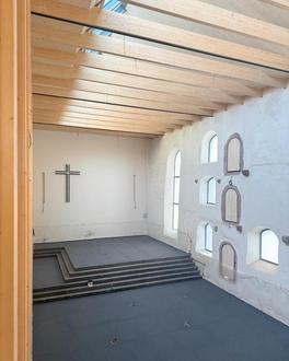 Die Bauarbeiten am Schiefen Turm von Bad Frankenhausen und am künftigen Besucherzentrum befinden sich in der fortgeschrittenen Ausbauphase. Der Schwerpunkt liegt derzeit auf dem Innenausbau, darunter Trockenbau-, Maler-, Boden- sowie Elektro- und Sanitärarbeiten. Parallel laufen die Fertigung und Montage von festen Einbauten, Türen, Glaselementen und der Innenarchitektur.