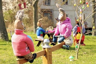 Nachdem viele Jahre Familie Gebhardt im Ortsteil Ringleben am Plan eine Hasenwiese aufgebaut hat, erblühte sie dieses Jahr erstmalig am Mühlrasen. Was heißt erblüht? Erbaut ist richtiger, denn Ralf Gebhardt hat in vielen Jahren Figuren, Dekoration und kleine Hingucker gebastelt.