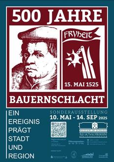 Im Zeitraum vom 10. Mai bis 14. September 2025 gedenkt das Regionalmuseum Bad Frankenhausen mit der Sonderausstellung „500 Jahre Bauernschlacht bei Frankenhausen 1525 - ein Ereignis prägt Stadt und Region“ der so genannten Bauernschlacht.
