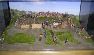 Ein besonderes Exponat ergänzt die Schau seit Anfang Juni. Ein Diorama des englischen Künstlers und Professor Doug Miller, welches die Wagenburg darstellt, ist im Marmorsaal zu besichtigen. Doug Miller widmet sich seit 1972 mit großer Leidenschaft dem Gießen von Zinnfiguren und dem Bau von Dioramen. Im Gegensatz zu den meist üblichen flachen Figuren, sind die von Doug Miller vollplastisch. In den Dioramen stellt er detailgenau historische Begebenheiten aus den Bauernkriegen dar. Schon seit einigen Jahren können die Besucher die Nachstellung der Blutrinnen in unserer ständigen Ausstellung sehen. Seit 2012 ist Doug Miller eng mit den Bauernkriegsmuseen und deren Arbeitsgemeinschaft verbunden. Er stattete auch dem Regionalmuseum Bad Frankenhausen häufig Besuche ab.