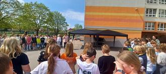 Die Kurstadt-Grundschule Bad Frankenhausen freut sich über eine neue Spielhütte zur Unterbringung der Außenspielgeräte und neue Pavillons