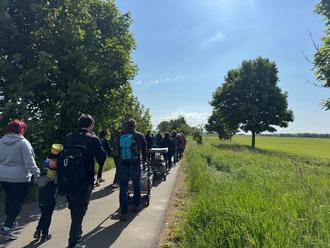 So stellt man sich den perfekten Wandertag vor: Schönes Wetter, gepackte Rucksäcke und Bollerwagen, kurzweilige Stationsaufgaben und Zeit mit der Familie.