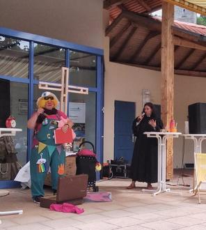 Frau Greifenstein wählte im „Rededuell“ mit ihrem hektisch agierendem Gegenüber eine moderne Version des alten Textes und holte damit den Clown auf „ein Normalmaß“ herunter. Es ist nicht im Urlaub wichtig, an dieses und jenes, an alle vorhandenen Probleme im Privaten und der Welt zu denken, sondern einfach mal bekanntermaßen „die Seele baumeln“ zu lassen. So gab es also noch ein gutes Ende mit den beiden „Kontrahenten“ und eine Auflösung bzgl. des Clowns: Es war nicht das erste Mal, dass Superintendentin Steffi Wiegleb in dieser Verkleidung den Menschen Freude bereitete.