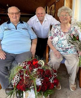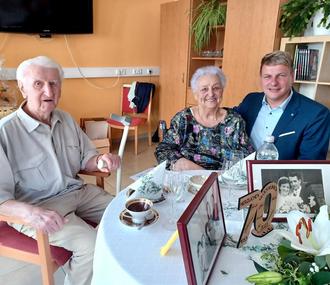 Am 04. Juli 2023 feierte die Eheleute Marianne und Josef Klug aus Bad Frankenhausen ihre „Gnadenhochzeit“. Gemeinsam blickten Sie auf 70 ereignisreiche Ehejahre zurück. Über die Einladung der Jubilare in das „Haus Wilma“ in Bad Frankenhausen, freute sich Bürgermeister Matthias Strejc sehr. Er übermittelte die besten Wünsche im Namen der Stadt und gratulierte herzlichst. Marianne und Josef Klug genossen den Nachmittag mit Ihrer Familie und Gästen sehr.