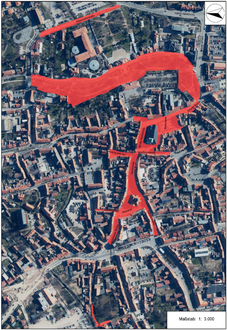 Das Gebiet der historischen Altstadt umfasst in dieser Anordnung die folgenden Straßenzüge und Stadtbereiche: