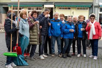Nach getaner Arbeit konnten sich alle Teilnehmer um 12:00 Uhr am Marktbrunnen zu einem gemeinsamen "Get-together" mit kleiner Mittagsversorgung versammeln und entspannen. Die Stimmung war fröhlich und ausgelassen. Wir bedanken uns bei allen Beteiligten und freuen uns nun unsere herausgeputzte Innenstadt allen Besuchern, Gästen und Einheimischen präsentieren zu können.