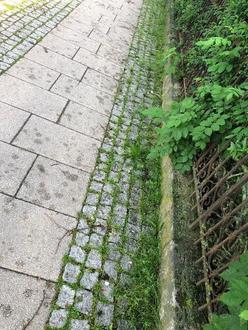 Aufgrund der aktuellen Wetterlage siedeln sich zusätzlich in den Fugen, in den Gossen und auch auf befestigten und gepflasterten Flächen verstärkt verschiedene Pflanzenarten an. Häufig sind dies Löwenzahn, einjährige Rispe oder andere Arten. Auf beschatteten Flächen treten auch Moose auf.
