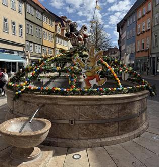 Der Rathausbrunnen der Stadt Bad Langensalza wird in der Zeit um Ostern seit Jahren von den Frauen der Gymnastikgruppe des SV Empor geschmückt. Schon im Vorfeld hieß es genügend Grünschnitt für die Gestaltung zu besorgen. Die Bürger der Stadt halfen mit, und stellten Grünschnitt aus ihren Gärten zur Verfügung. Dafür ein Dankeschön an alle Spender.