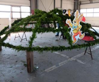 Herr R. Krieg unterstützte uns, indem er die Osterhasen montierte. Am nächsten Tag, wurde die Krone von Mittarbeitern des Bauhofes zum Rathausbrunnen gebracht und montiert. Hier vor Ort wurden die vormontierten Ostereierketten befestigt. Hierbei unterstützte uns ein Mitarbeiter des Bauhofes. Auch ihm gilt ein Dankeschön.