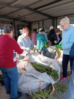 Traditionsgemäß beginnen die Sportfrauen am Vortag mit dem Binden der grünen Sträußchen an die Metallkrone. Damit waren sechzehn Sportfrauen mehrere Stunden beschäftigt.