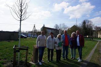 Familie Hess pflanzte am 5. April eine Kleinkronige Winter-Linde 'Rancho' im Wohngebiet Nord für Frau Gudrun Hess. Damit überraschte und erfreute sie die Jubilarin zu ihrem 90. Geburtstag.