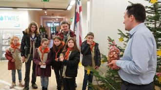 Ein besonderes Highlight brachten die Pfadfinder vom Stamm St. Nikolaus in Rehlingen mit dem Friedenslicht von Bethlehem in unseren Gemeinde. Das Symbol der Kerze schafft eine Verbindung zwischen verschiedenen Kulturen und betont die Wichtigkeit des Friedens in unserer Gemeinschaft. Die Flamme wurde von den Pfadfindern bis nach Rehlingen-Siersburg gebracht und symbolisiert in der Vorweihnachtszeit Hoffnung und Solidarität. Das Licht wird Anfang Dezember in Bethlehem entzündet und wird dann durch Pfadfinder*innen in die gesamte Welt verteilt. Vielen Dank an den Stamm St. Nikolaus in Rehlingen!