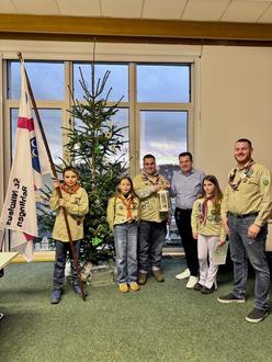 Ende letzten Jahres hatten wir wieder die Freude, die Pfadfinder des DPSG Stammes St. Nikolaus Rehlingen im Rathaus begrüßen zu dürfen. Wie jedes Jahr brachten sie das Friedenslicht aus Bethlehem zu uns – ein Licht, das für den Frieden und die Hoffnung steht und uns daran erinnert, wie wichtig es ist, füreinander einzustehen.