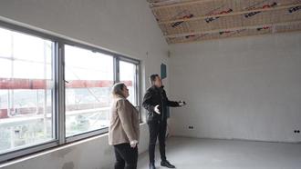 Architektin Justine Lamest und Bürgermeister Joshua Pawlak auf der Baustelle in Gerlfangen