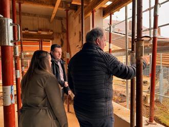 Bauamtsmitarbeiterin Justine Lamest, Bürgermeister Joshua Pawlak und Ortsvorsteher Thomas Hoffmann bei der Besichtigung des Neubaus in Gerlfangen