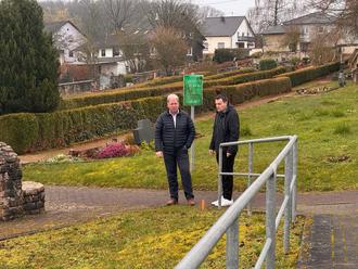 Ortsvorsteher Thomas Hoffmann mit Bürgermeister Joshua Pawlak in Gerlfangen auf dem Friedhof