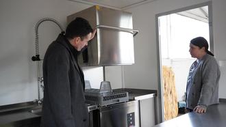 Bessere Arbeitsbedingungen und ein höherer Standard im neuen Geschirrmobil. Bürgermeister Joshua Pawlak und Bianca Weber von der Liegenschaftsabteilung haben sich das neue Geschirrmobil vor Ort angeschaut.