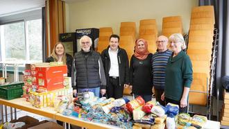 Helfer*innen und Gemeindeverwaltung bei der Ausgabe des Buffet des Herzens in der Niedtalhalle. Vielen Dank an alle Helfer*innen sowie für alle Spenden