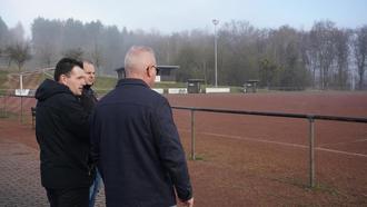 Ortsvertreter und Bürgermeister am Fußballplatz in Eimersdorf