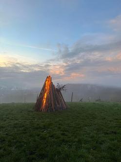 Pünktlich zum Sonnenaufgang wurde das Feuer entfacht.