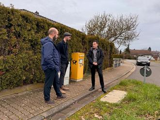Bürgermeister Joshua Pawlak (r.), der Erste Beigeordnete Maik Licher (l) und Ortsvorsteher Sebastian Zimmer stimmten vor der Sitzung vor Ort die letzten Details ab.