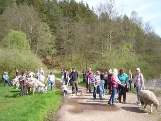 Mit knapp 40 Wanderfreunden/innen war am vergangenen Samstag der Saarwald Verein Rehlingen-Siersburg im Vorland des Pfälzer Waldes beim Ort Gerhardsbrunn bei einer Wanderung der besonderen Art unterwegs. Unsere Tour-Begleiter waren Esel, Hunde und auch ein Schaf (unser Foto).