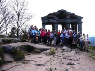 Mit mehr als 30 Wandersleuten waren wir am vergangenen Samstag in den Vogesen unterwegs und haben dabei auch den Gipfel des ‘mystischen Berges’ Donon erwandert. Unser Foto zeigt die Gruppe vor der Silhouette der Nachbildung eines römischen Tempels auf über 1000 m Höhe.