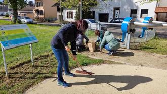 Auf dem Spielplatz an der Dorfwiese in Siersburg trafen sich am Mittwoch, dem 24.04.2024, eine Gruppe von Erwachsenen und Kindern. Gemeinsam reinigten und pflegten sie den Spielplatz. Es wurde Müll entfernt, der Fallschutz abgekehrt und die Wege von Unkraut befreit. Initiiert hatten die Aktion Gisela Colbus, Rita Irsch und Christa Klein im Rahmen des KlikKS Klimastammtisches. Die Aktion soll in ca. 2 Monaten wiederholt werden.