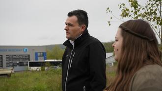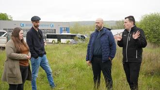 Bürgermeister Joshua Pawlak mit der Architektin der Gemeinde Justine Lamest beim Ortstermin vor Ort, um die neue Fläche vorzustellen.