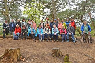 Eine wirklich beeindruckende Wanderung erlebten etwa 40 Teilnehmer/innen einer Tour auf dem Premiumwanderweg ‘Altschloßfels’ in der Vorderpfalz. Höhepunkt war der Anstieg zum Massiv des Altschloßfelsens. Unser Foto (Bruno Dewald) zeigt die Wandergruppe bei einer verdienten Pause.