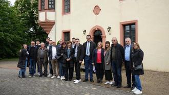 Die Delegation aus Sutera am Schloss Hausen in Rehlingen