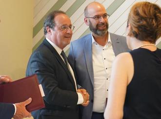 1. Beigeordneter Maik Licher gemeinsam mit dem ehemaligen französischen Präsidenten François Hollande zum Austausch in Colmen