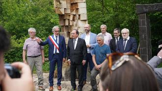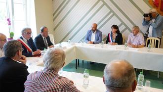 Gemeinsamer Austausch zwischen dem ehemaligen französischen Präsidenten François Hollande, Bürgermeister und Vertretern aus Colmen und Vertretern aus Rehlingen-Siersburg.
