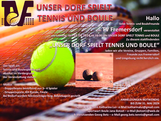 Wie bereits angekündigt, wird auch in diesem Jahr das beliebte Dorfturnier auf unserer Anlage stattfinden. Alle Vereine, Gruppen, Familien und Freunde aus Fremersdorf und Umgebung sind hierzu herzlich eingeladen.
